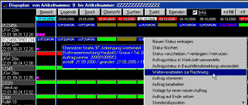Alle verleihbaren Maschinen, Geräte und Fahrzeuge werden dort mit interner Nummer und grundlegenden Daten dargestellt. Hierbei ist es nicht nur möglich pro Tag und Gerät mehrere Vermietungen darzustellen, es besteht ebenfalls die Möglichkeit der Anzeige von Prüfterminen und weiteren datumbezogenen Informationen zum Gerät. Alle relevanten Belege, wie zum Beispiel Auftragsbestätigung, Lieferschein/Mietvertrag und Rechnung können direkt aus dem Dispositionsplan erstellt werden. |
